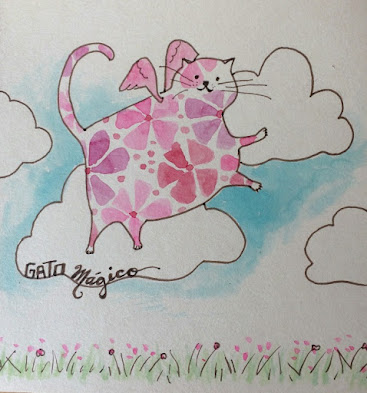A Alejandra (del grupo en Fb: Mixed media y cia.) se le ocurrió que tomáramos este reto... me pareció interesante y aquí me tienen, dibujando un gatito por día!