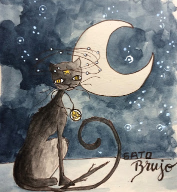 Estando en octubre no podía faltar el gato hechicero, pero no lo quería obvio, con su sombrero y su caldero, pero una varita mágica si que no le debía faltar: