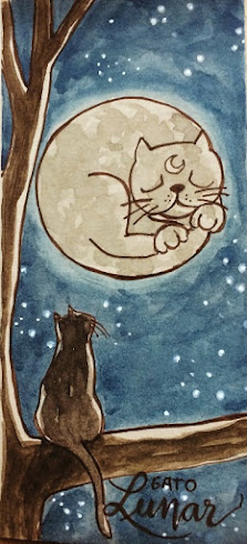 Gato 19: Gato lunar: No me quise complicar la vida y enseguida pensé en una luna conteniendo una gata... y un gato amándola desde la tierra