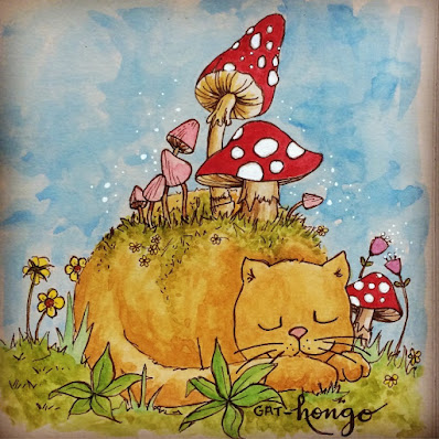 Lo más fácil hubiese sido entonces transformar un gato en un hongo... total que esto fue lo que salió, un gatongo-fodongo! es que hasta salía el cuento a borbotones: Erase una vez un gatito que era tan perezoso que empezó a dormir y dormir hasta que la madre tierra lo fue arropando...