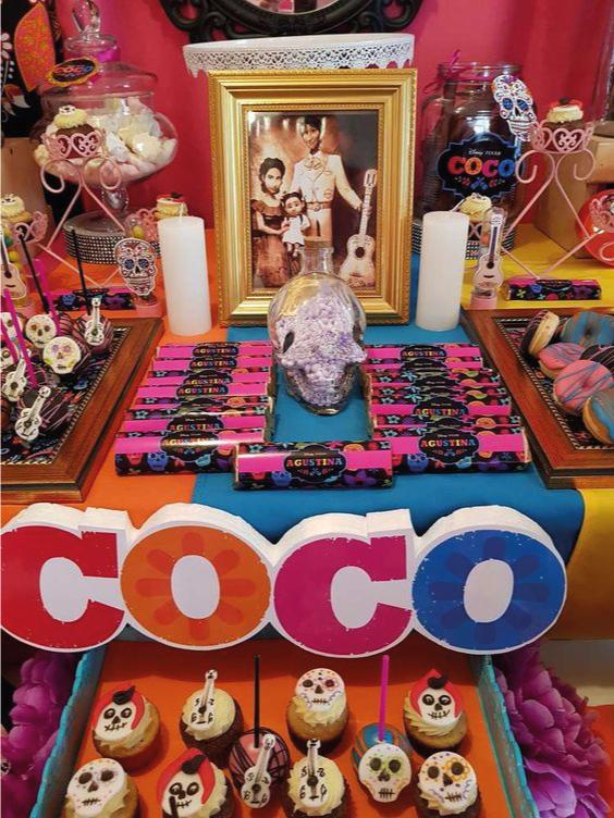 Para esta publicación, elegí las decoraciones de fiestas más lindas y originales inspiradas en Coco para que puedas guardar las que más te gusten y así poder decorar el cumple de tus hijos. Vas a encontrar mesas de Candy bar ambientadas al mejor estilo mexicano, con muchos colores fuertes, flores, calaveras y guirnaldas de papel picado.