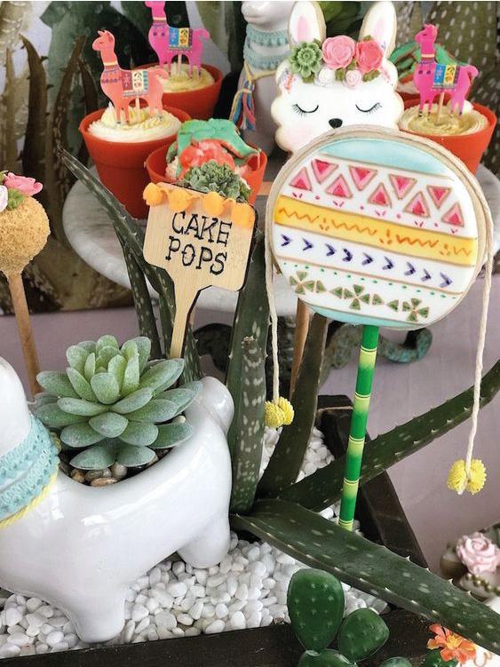 Tortas decoradas, cupcakes, galletas glaseadas, decoración de la mesa de candy bar y mucho, mucho más, como siempre!! Todo lleno de simpáticas llamas, cactus y mantas regionales. Espero que te gusten!