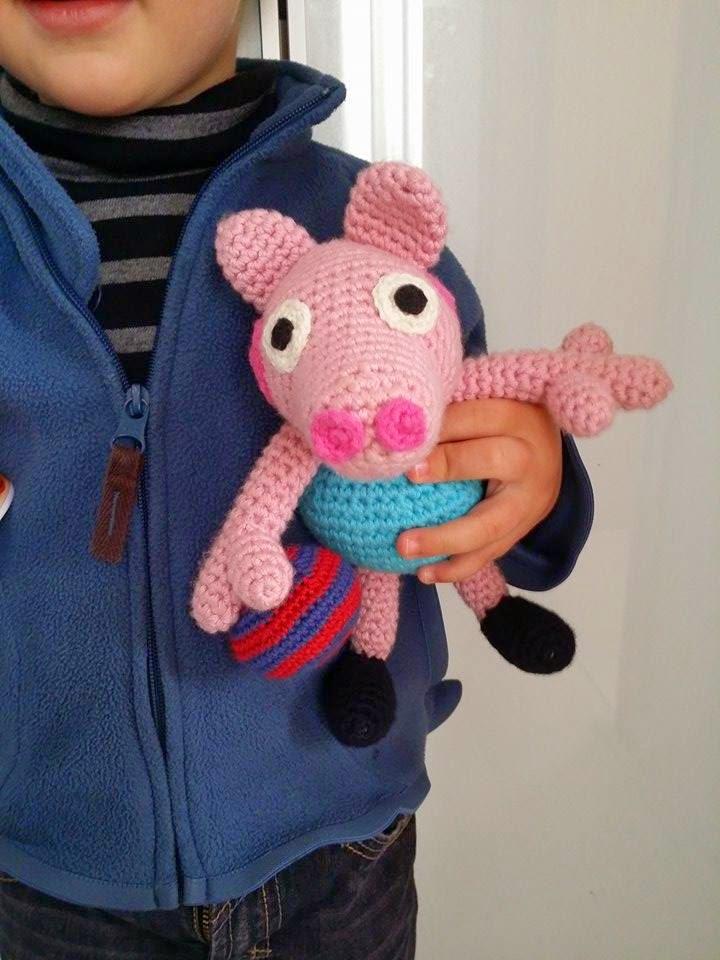 ¿Y quién fue el destinatario de este precioso cerdito rosa? El pequeñín de Ana, que tiene apenas 2 añitos :) Su mami me envió varias fotos y es muy muy reconfortante ver la gran sonrisa que tenía en ellas.