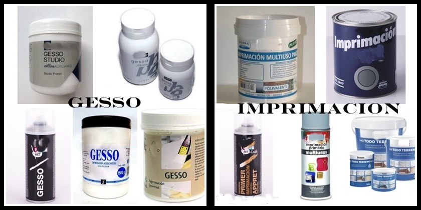 Realmente tanto el gesso como la imprimación se emplean para preparar los soportes, bases o superficies donde vamos a trabajar, maderas, lienzos, vidrio, plásticos, cartón, papel.