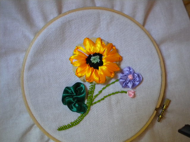 Girasol bordado con cinta de raso