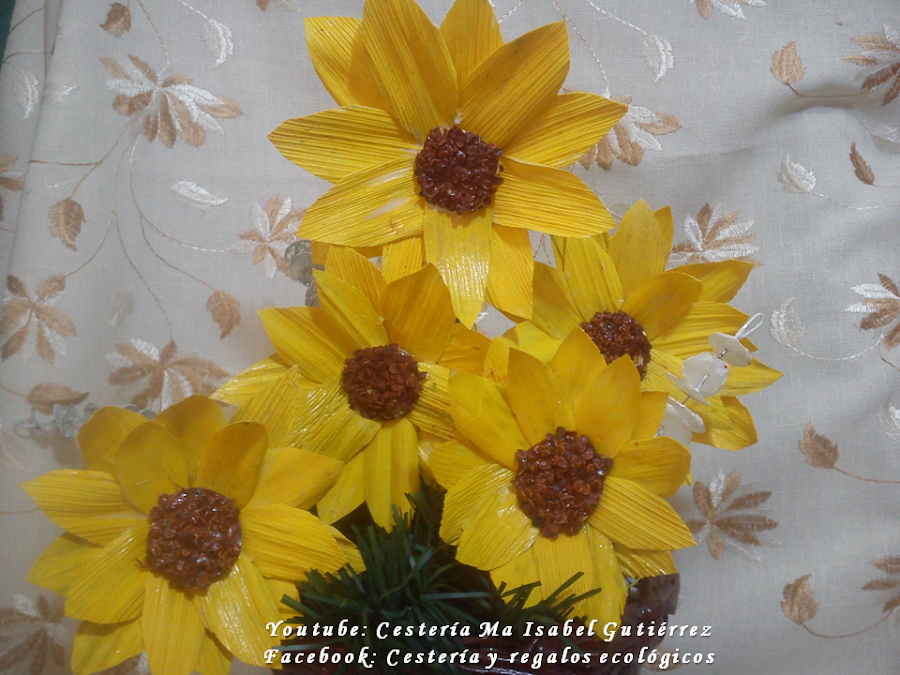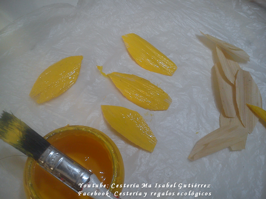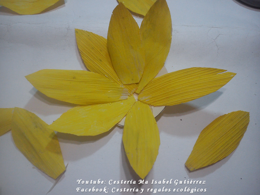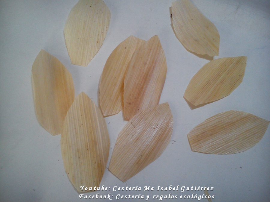 En base a los moldes, cortamos los pétalos de las hojas de maíz o choclo, considerando que cada flor lleva entre 15 y 17 pétalos...