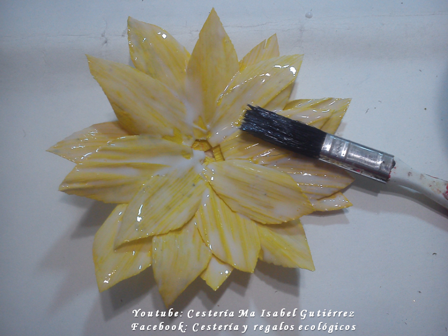 Aplicamos una capa generosa de barniz transparente o de acetato, esto hará los pétalos muy duros y evitará que con el tiempo se deformen...