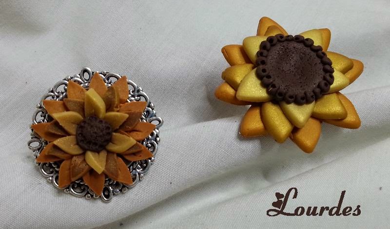 Broches de 4 centímetros de diámetro barnizados y con detalles en arcilla polimérica