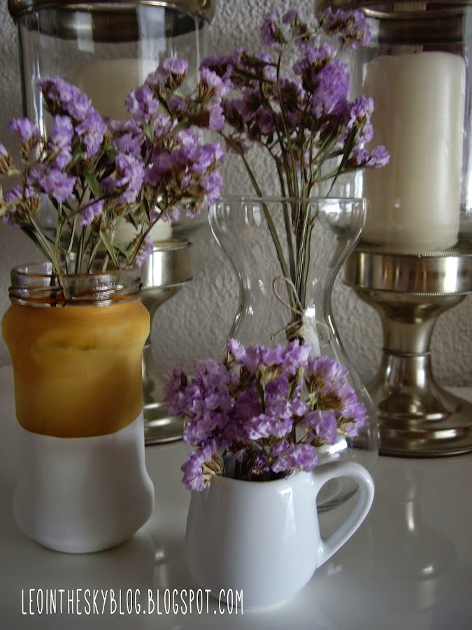 Me gusta hacer pequeños bodegones en casa, recolocar las cosas de vez en cuando y organizar pequeños rinconcitos como el que os muestro hoy con las siempre vivas, y varios jarroncitos que tenía por casa.
