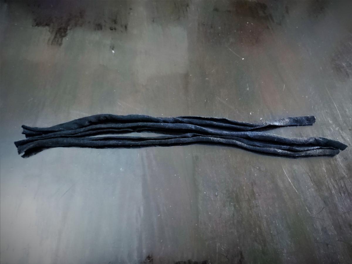 Goma unida. Para tapar la unión, utilizaremos un poco de trapillo, lo cosemos alrededor y estaría acabada.