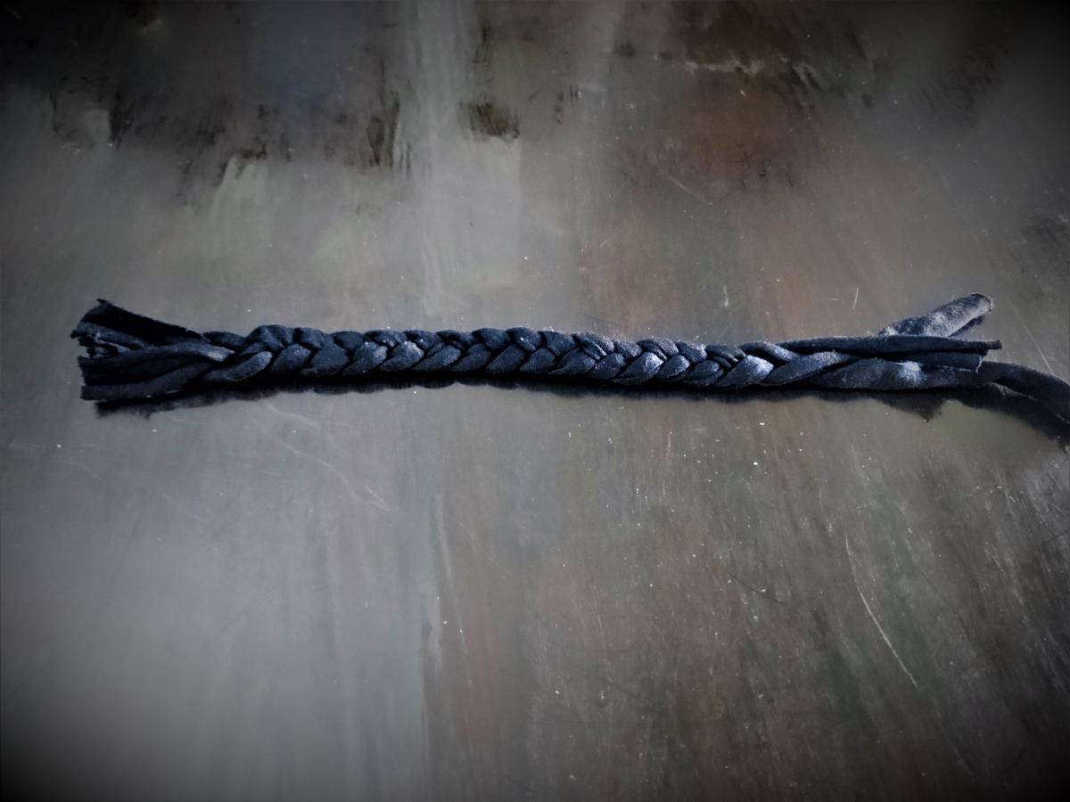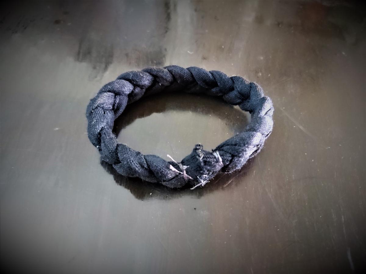 Trapillo trenzado. El largo de la trenza tiene que ser aproximadamente del ancho de tu muñeca.