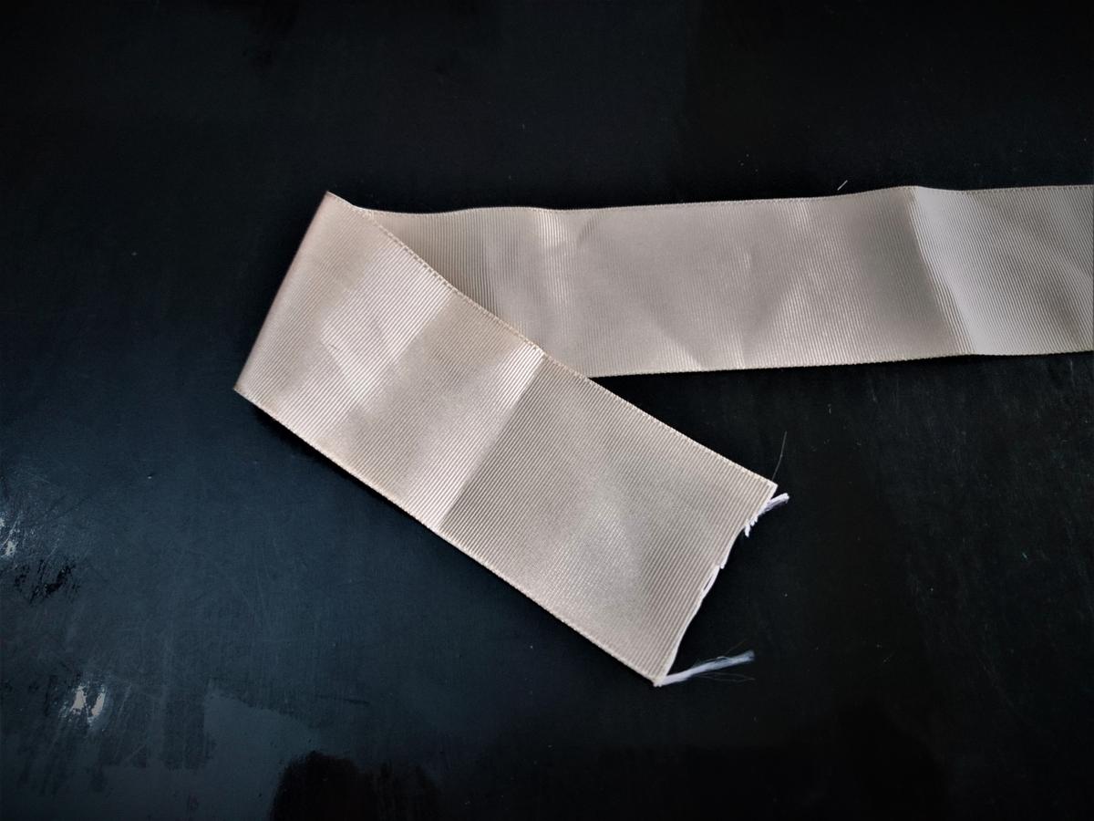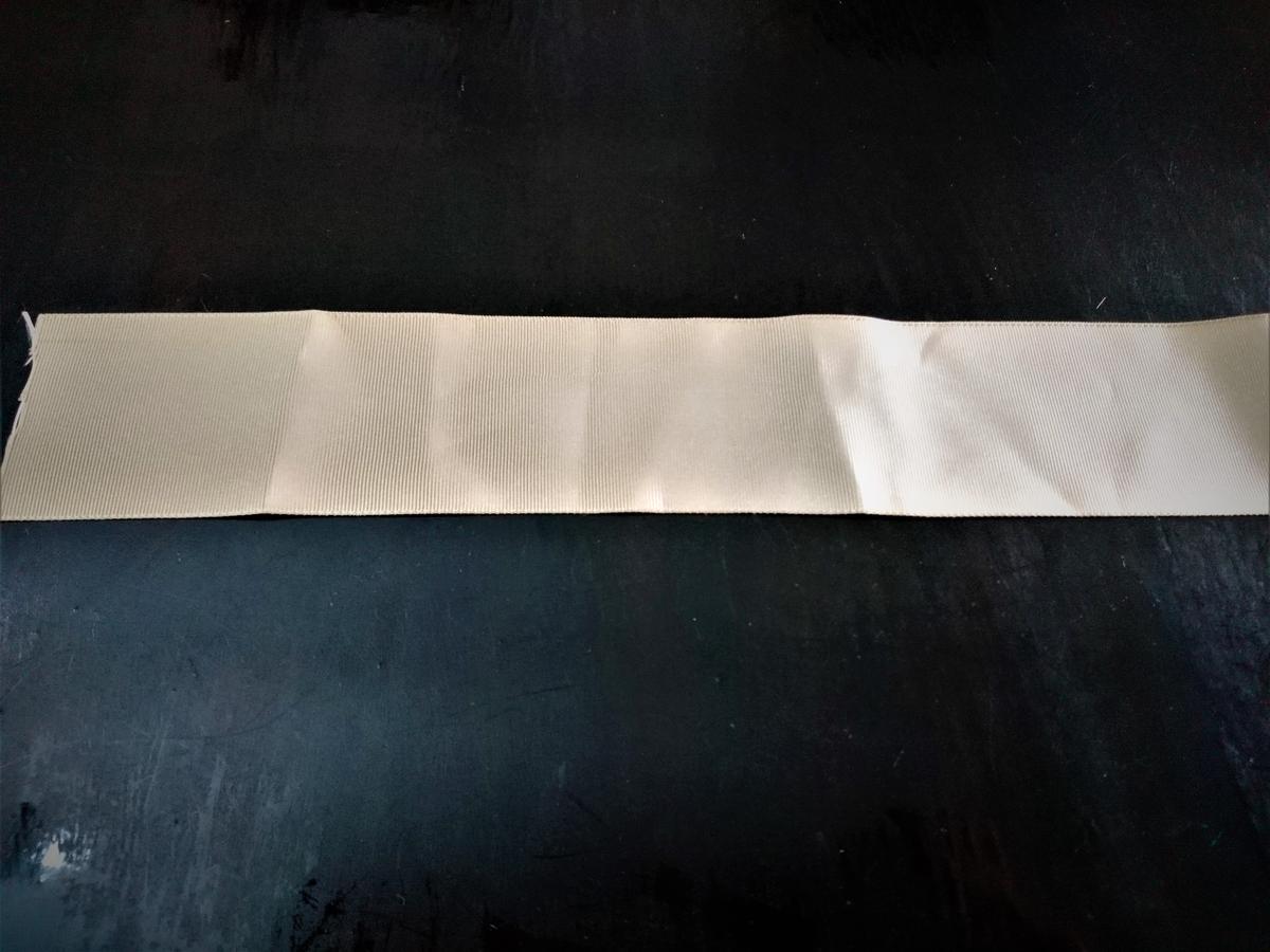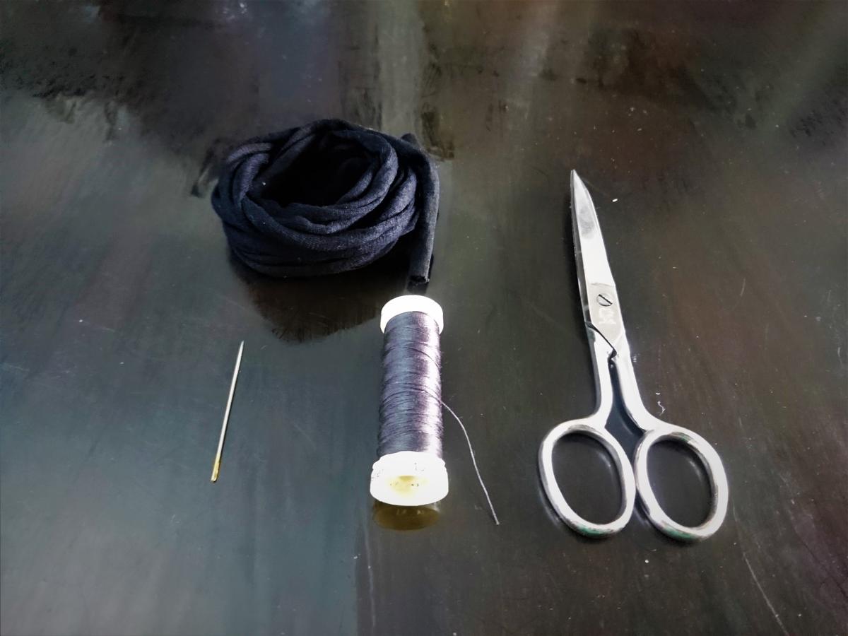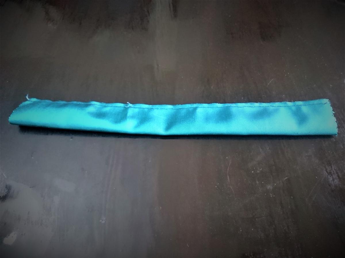 Materiales. Lo primero que haremos es un rectángulo de tela de unos 5 cm de ancho y coseremos los extremos, para hacer una especie de dobladillo.