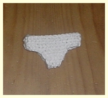 Vuelta 1.- 1 pb en la segunda cadena, 1 pb en cada una de las dos cadenas siguientes, 3 pb en la última cadena. Giramos la pieza y por el otro lado hacemos 1 pb en cada una de las dos siguientes cadenas y 2 pb en la última cadena (10 pb)