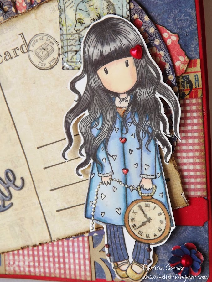 Por detrás se ve asomar el troquel Tim Holtz Weathered Clock, que lleva Crackle accents.