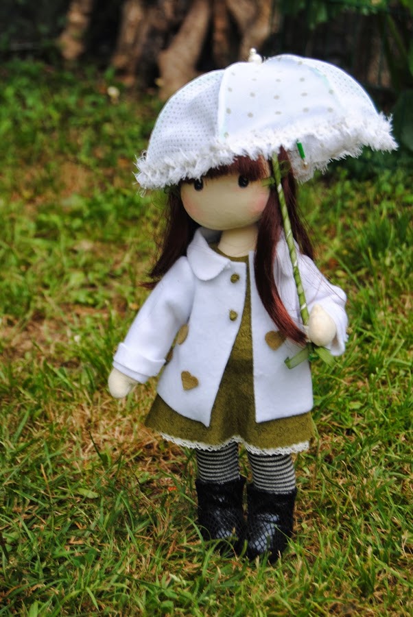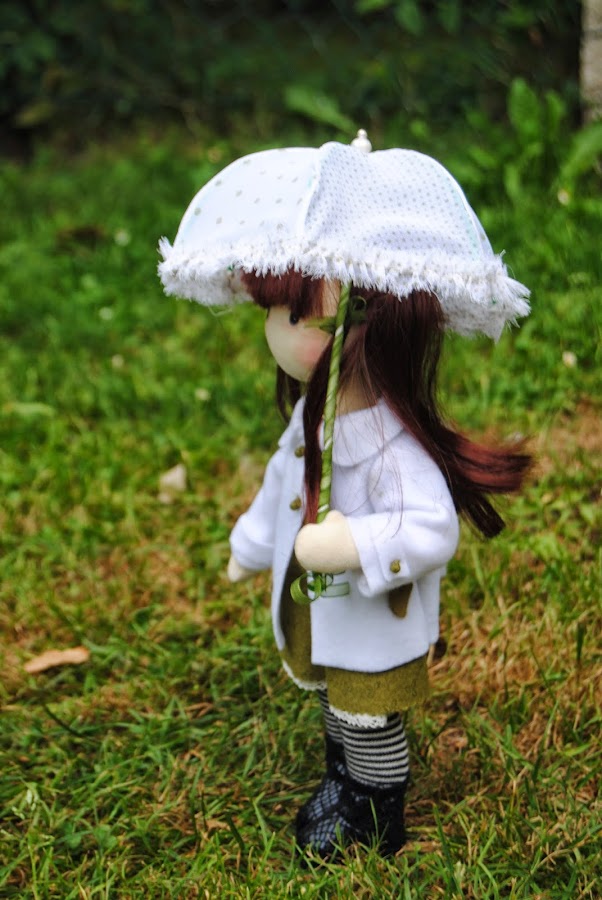 Está hecha con otro Tipo de patron diferente a las otras que hice y el montaje tambien es diferente . tanto la ropa como las botas y el paraguas están hechos a mano.