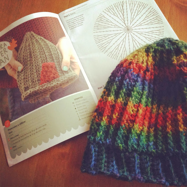 I entre fils i agulles vaig estar fent un gorro molt especial per dos motius. El primer, perquè vaig seguir el patró del mini ganchitos en versió impressa que vaig comprar al Festivalet el dia que vaig conèixer la Ingrid de Las Teje y maneje. La col·lecció de Cuentos que he guardat curosament des del dia que el vaig adquirir amb un deler incansable per provar el gorra de Peter Pan.