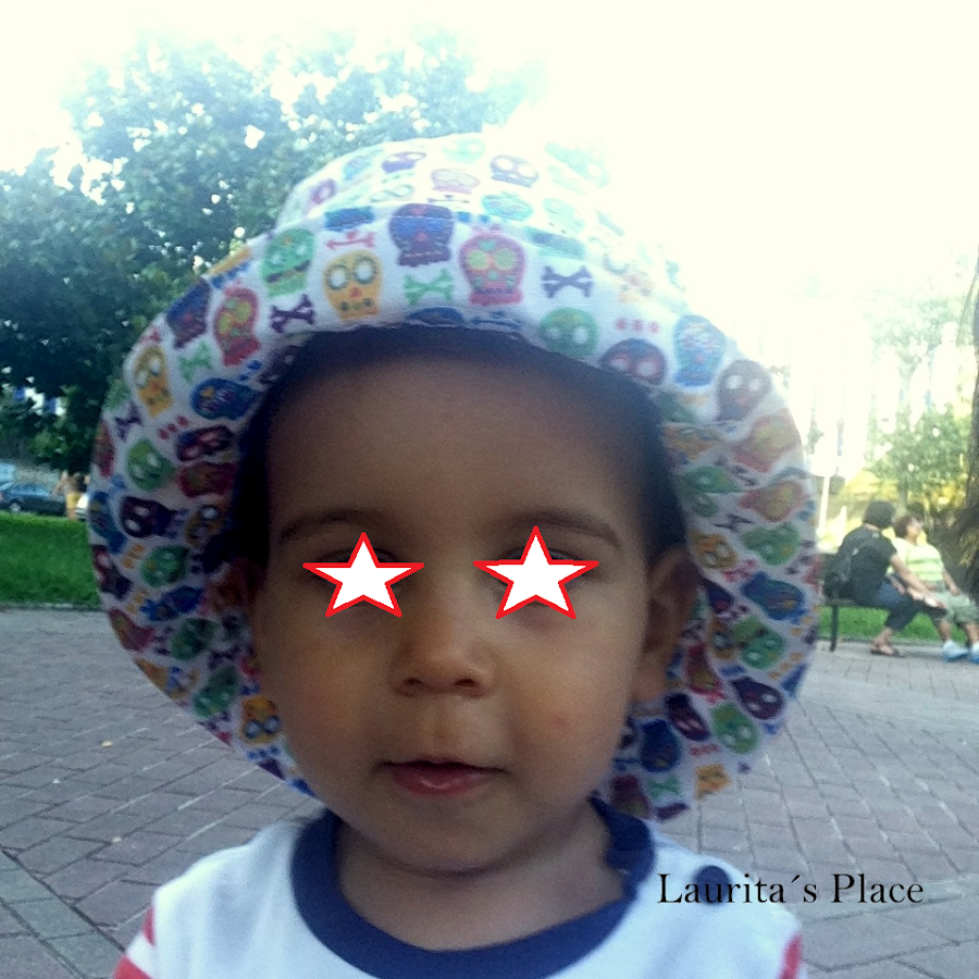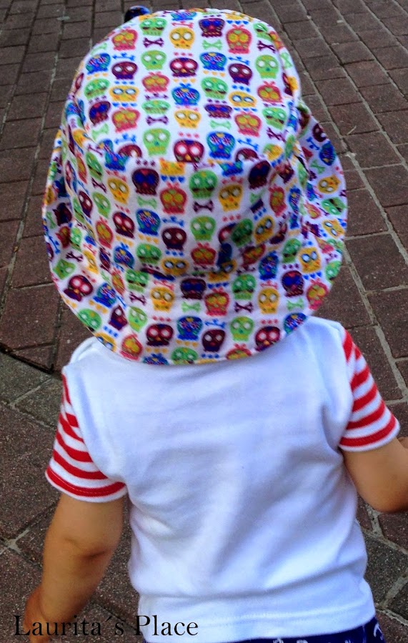 Llegó el verano y me encontré con la necesidad de hacerle un gorrito a mi Baby, así que cogí la tela de Calaveras Mexicanas que adoro y le hice uno.