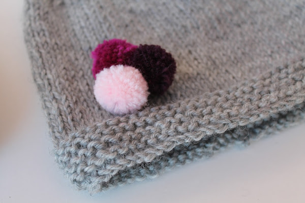 Como toque final se me ocurrió hacer un pequeño adorno con unos mini pompones en morado, fucsia y rosa, sin duda mi parte favorita del conjunto.