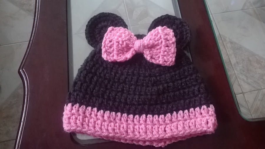 Este año ha sido un baby boom todos mis amigos o conocidos encargaron bebé lo que me tiene tejiendo como loca, les muestro este gorrito de mimi que pronto estará en manos de una bebita hija de una amiga de mi esposo, es muy similar a los anteriores que he publicado el único detalle es que la parte rosa es más amplia (las ultimas dos vueltas) El moño no tiene mucha ciencia solo es un rectángulo de 8 puntos dobles y 8 vueltas, para hacer la parte de enmedio solo es darle vueltas con el estambre y luego un nudo ciego, más fácil imposible. aquí te dejo un enlace para el patrón que publique anteriormente de este gorrito http://www.tejidosmililopez.blogspot.mx/2013/11/patron-gorro-mickeymimi.html