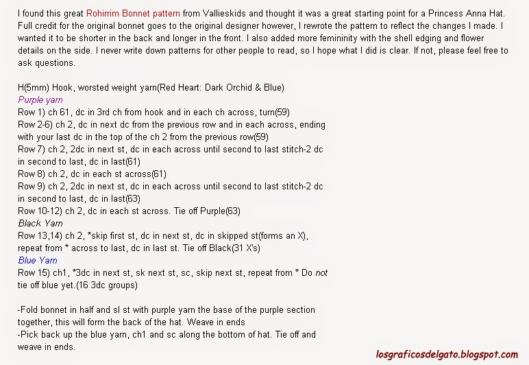 Patrón para realizar el gorro de Anna de frozen en ganchillo...