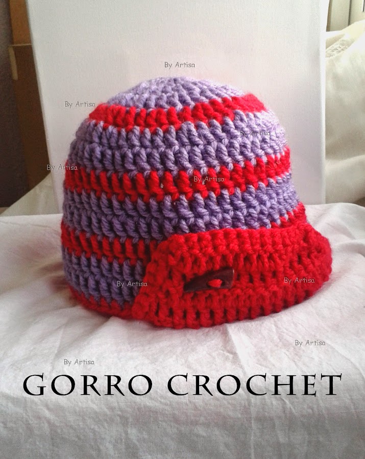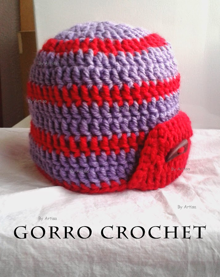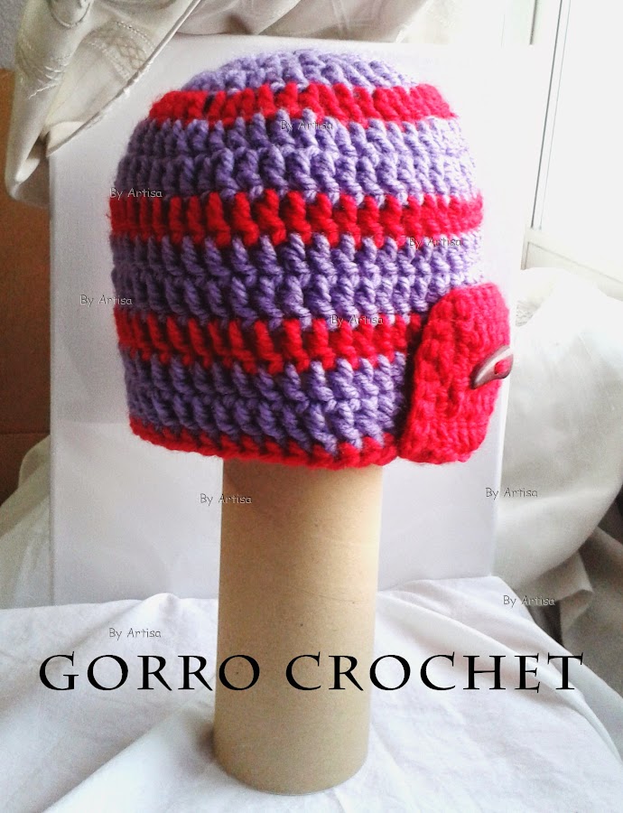 Hola, hoy vengo a enseñaros un gorro que me hice para mi, por lo general no me hago nada, siempre es para las niñas, para regalarlo o algún encargo que me sale, pero este año decidí hacerme un gorro de crochet para mi, y lo he usado mucho, tanto que mas de una se ha fijado en él para copiarlo, jeejejej. No es que sea muy especial, pero le hice un ala levantada y le puse un botón de adorno, quise darle mi toque con algo que a mi me gustase. Primero pensé en hacer una flor, pero después me gustó mas la idea del ala levantada.