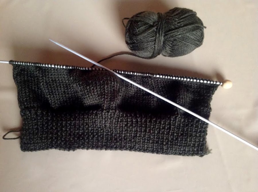 - Sigue con el punto jersey hasta que tengas un total de 11cm + 3cm de elástico.