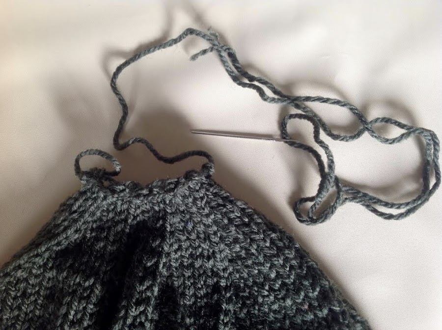 - Enhebra una aguja lanera con ese trozo de lana y pásala por los puntos que has soltado, asegúralos y remata.
