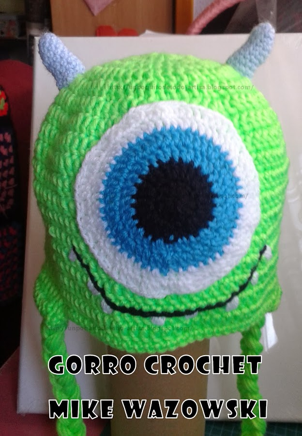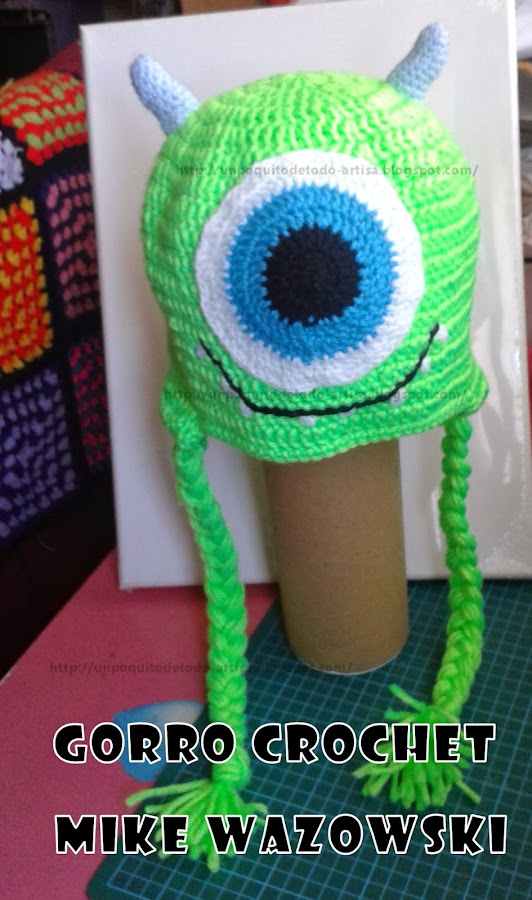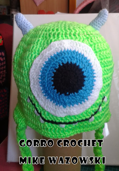 Hoy os enseño un gorro de Mike Wazosky tejido a crochet que me encargaron para navidad, a mi me gustó mucho el resultado y a la chica que se lo envié (que era para su sobrino) también le gustó. Os enseño varias fotos para que lo veáis.