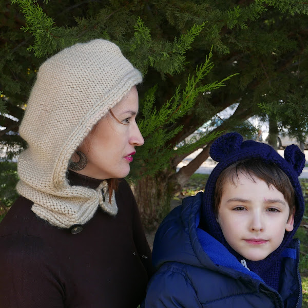 Pero esto no queda aquí, yo también me he lanzado a hacer un gorro con cuello para mí, aquí nos tenéis a los dos: