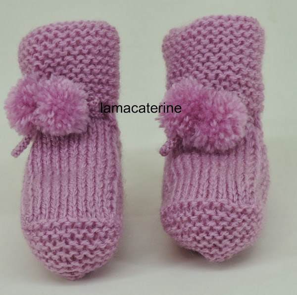 Los peucos como quería que hicieran juego con el gorro también están tejidos en punto plano y punto bobo.