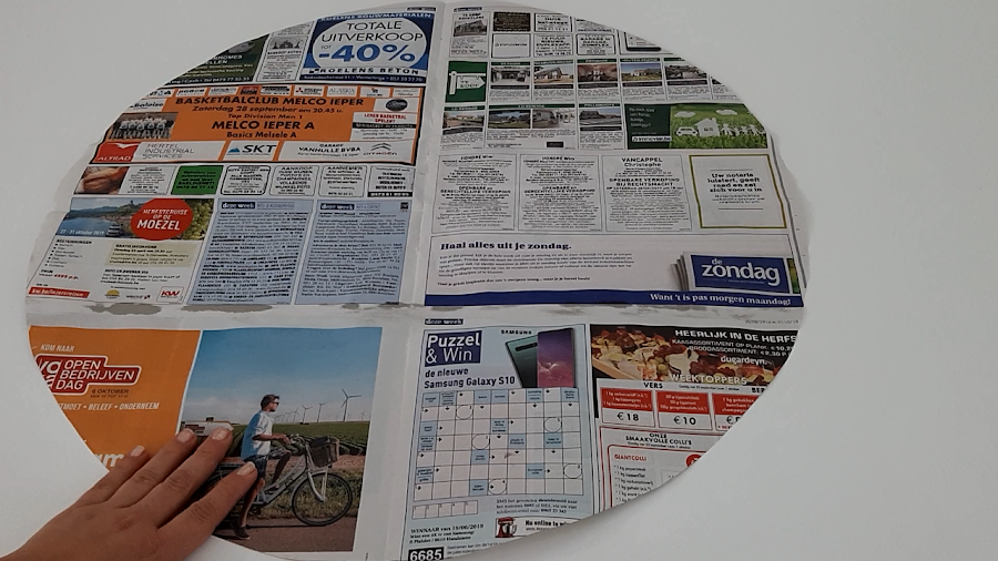Empezamos haciendo el patrón, para ello necesitamos una pieza de papel, en mi caso usaré dos hojas de un periódico viejo que uní previamente con pegamento porque necesito un trozo grande.
