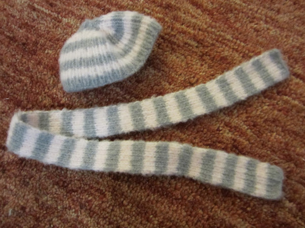 Y me volvió a sobrar un poco mas de lana, y pensé??seguro que con esto me sale algo para la Nancy?? Así que ni corta ni perezosa me puse al lío, y en un ratito le hice una bufandita y un gorro a la muñeca, para que fuera igual que mi niña. Para el gorro ya apenas me quedaba lana, por eso me quedó un poco cortito, jejeje?. Pero para ser el primero que le hago y con sobras tampoco esta tan mal!!