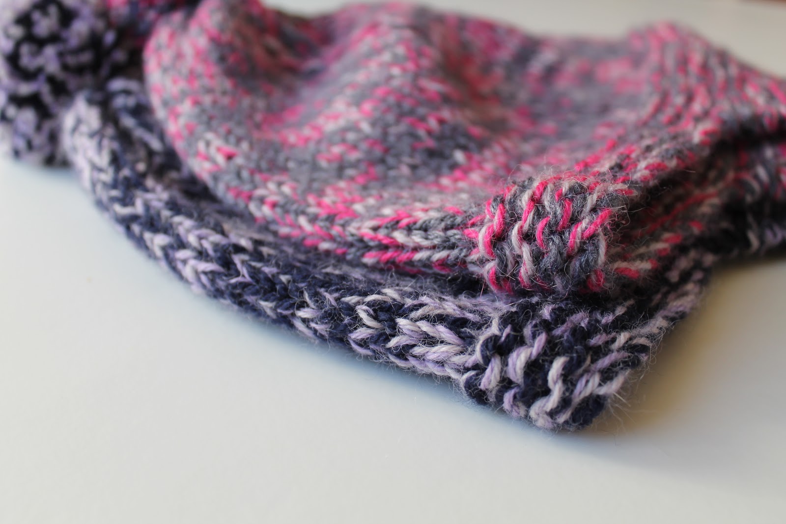 I had to make two identical hats in different colours and as I thought that making them in one plain colour was a little bit boring I decided to join three yarns of different colours for each hat.
