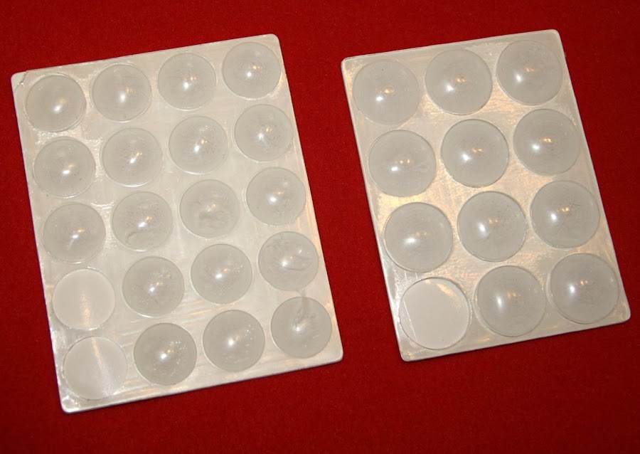 Un día, paseando por un bazar chino, vi una cosa que me pareció que podía ser el mismo producto. En realidad se trata de estos pequeños topes transparentes que se utilizan para evitar que se puedan producir roces sobre el mobiliario.