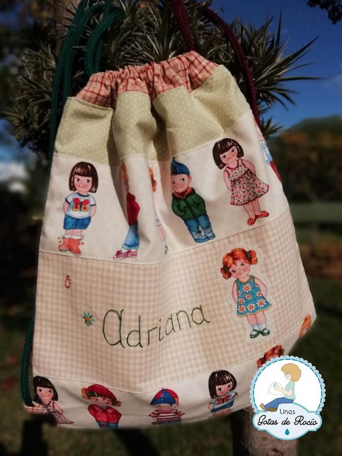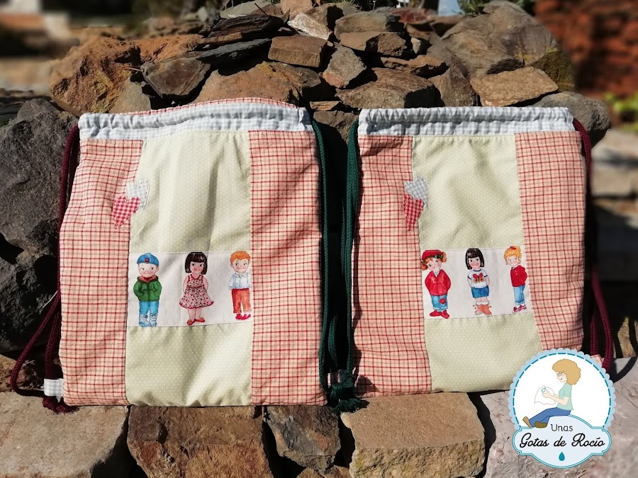 Ya sea una flor bordada junto a cada nombre, dos corazones, dos nenas con coletas como Adriana y Lucía o los cordones de las asas en diferentes colores, cada mochila está repleta de detalles y cariño.