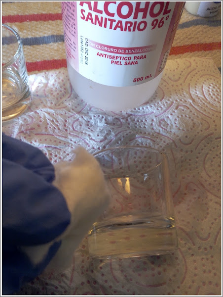 Lo primero es limpiar bien el vaso o el cristal donde vayamos a realizar el grabado. Limpiarlo con alcohol, para que no queden huellas.