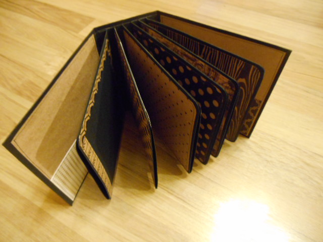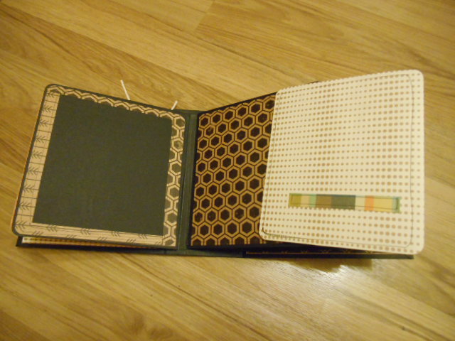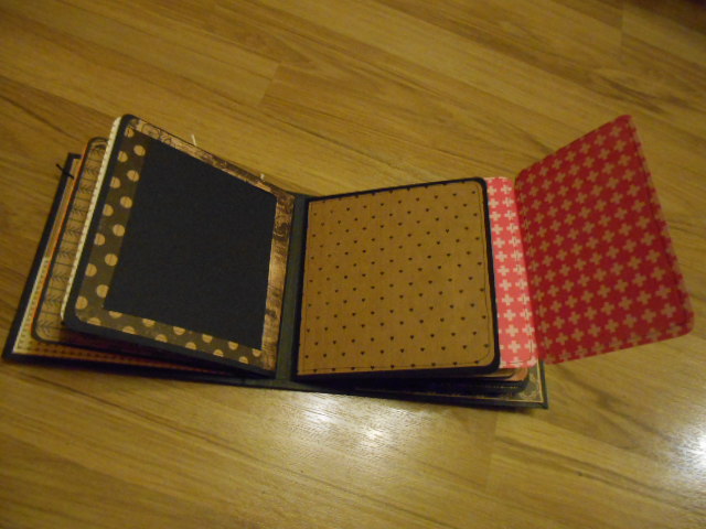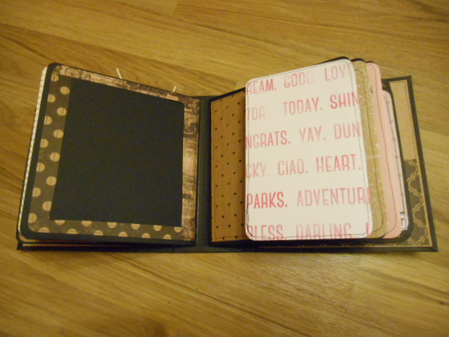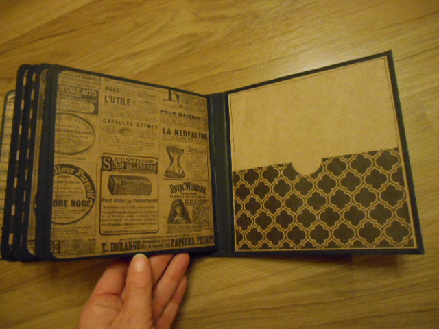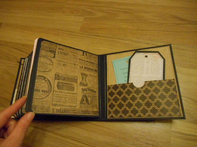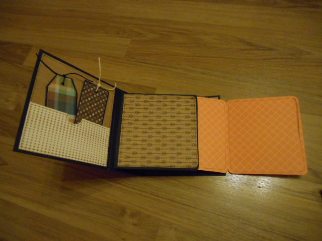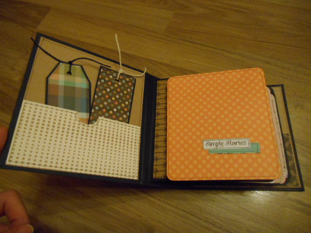 La contraportada con un bolsillito con dos tags y la primera página igual que todas las demás tiene un bolsillo lateral para poner más fotos