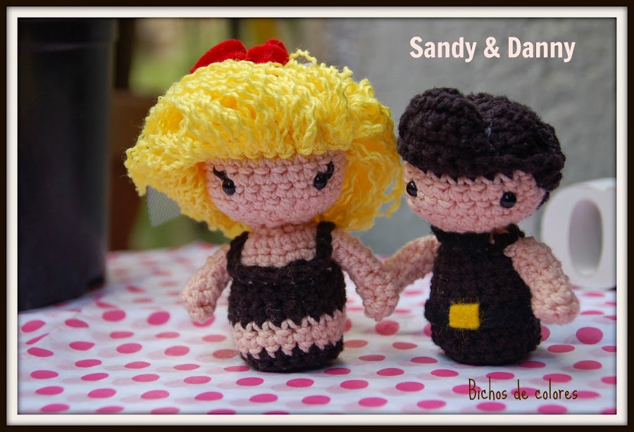 Hace algún tiempo tuve un engargo muy especial, para una boda muyyyyy romántica, donde los novios querian hacer regalitos a los proximas parejas que se iban a casar, y como la temática de la boda era el cine, eligieron parejas cinematograficas famosas, entre ellas esta parejita tan famosa formada por Danny y Sandy.. Os suenan?