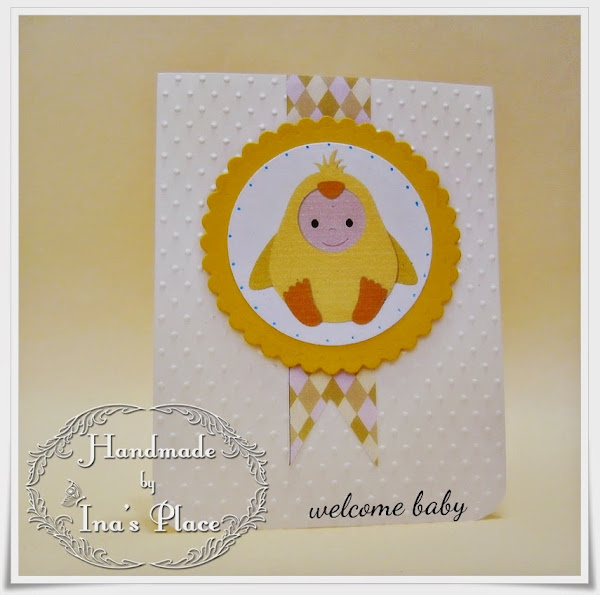 Esta hermosa y delicada tarjeta se puede utilizar cuando no conocemos el sexo del bebé.Los colores y motivo resultan unisex.