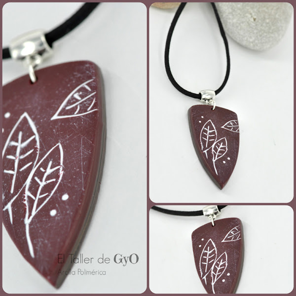 GROT GRANATE. Colgante corto, con dibujo incrustado de hojas. Ainss que chulo eh?