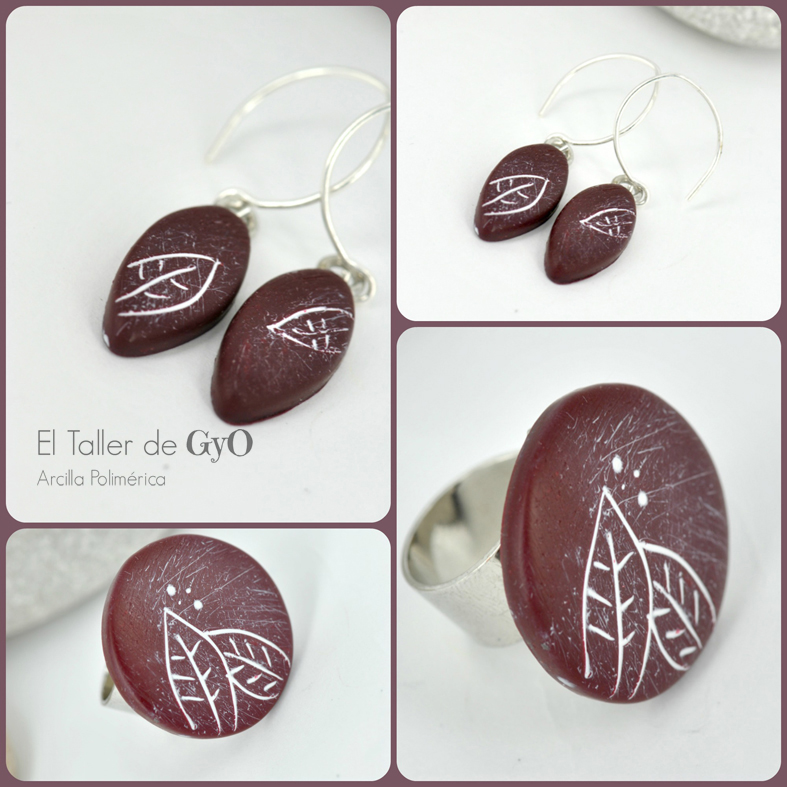 Pendientes y anillo con similar dibujo. Todo hecho a mano (incluido grabado)