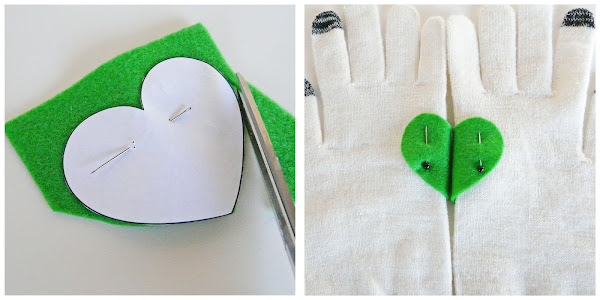 3. Sujeta el medio corazón con una aguja en la parte interior del guante que prefieras.