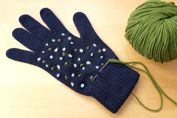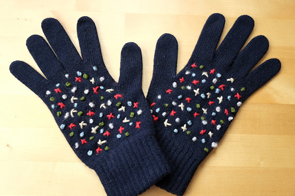 Y ya tenemos unos divertidos guantes de lana bordados para este frío invierno. Anímate y borda unos, no tires tus viejos guantes, dales una nueva vida.