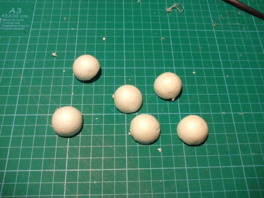 2. Separamos las bolas de porex del número 3 y cortamos por la mitad.