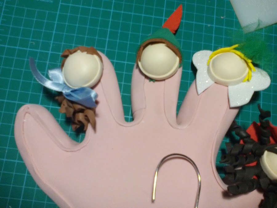 9. Wendy, para ello cortamos y forramos media bola del número 3 de color carne y rizamos el cabello.