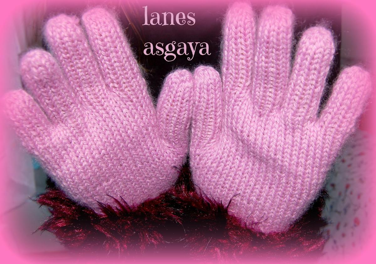 Se teje por separado la tira de hilo "Rabbit" y los guantes y al final se cosen. Para la tira no recuerdo los puntos que monté, lo siento, no lo apunté, pero supongo que serán aproximadamente 7, 8 puntos y tejemos del derecho hasta tener el largo de la circunferencia de nuestra muñeca.