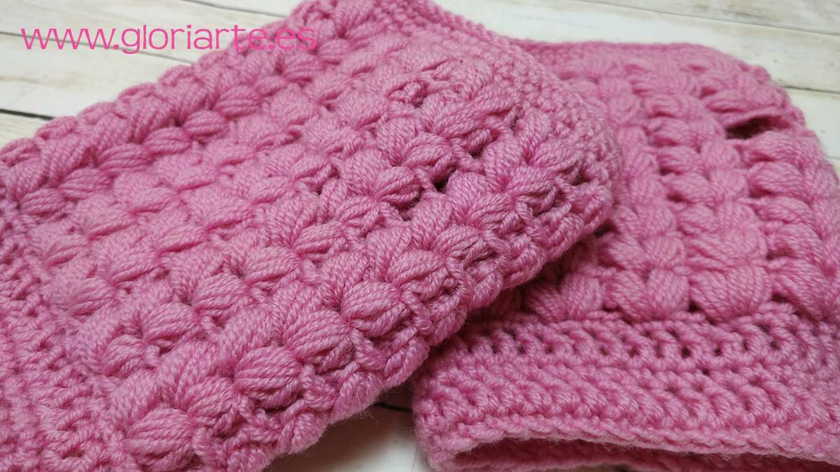 Entonces si combinamos un punto espectacular con un proyecto práctico y bonito, el resultado son estos preciosos guantes sin dedos o mitones que yo he realizado en color rosa, porque me gusta mucho este tono, pero que queda genial también en otros colores, incluso en varios, realizando una vuelta de cada color, creando unos mitones más divertidos y juveniles, te animo a probarlo