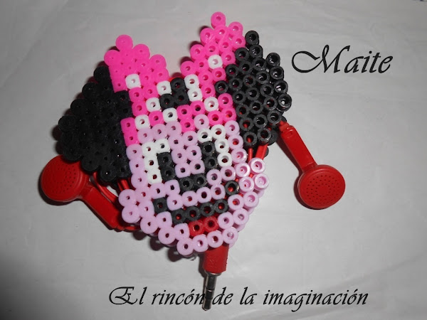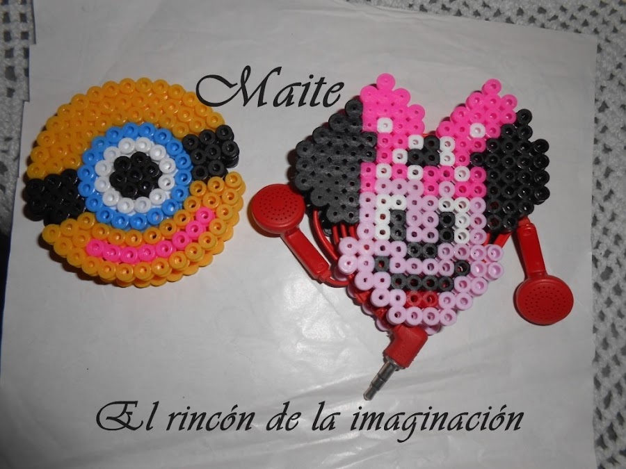 Mirando fotos de trabajos realizados me he sorprendido al comprobar que no había publicado nada hecho con hamas. Por este motivo os voy a mostrar estos dos guarda auriculares, entretenidos de hacer y prácticos. En internet se pueden encontrar innumerables modelos para realizar, a los que se les puede dar un toque personal. Y además podemos crear nuevos modelos