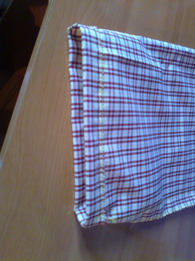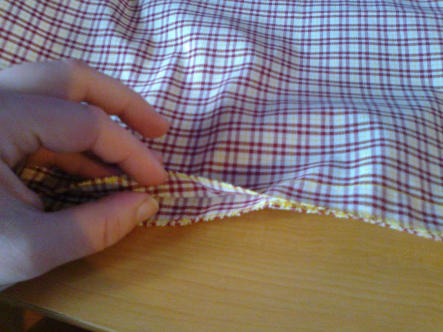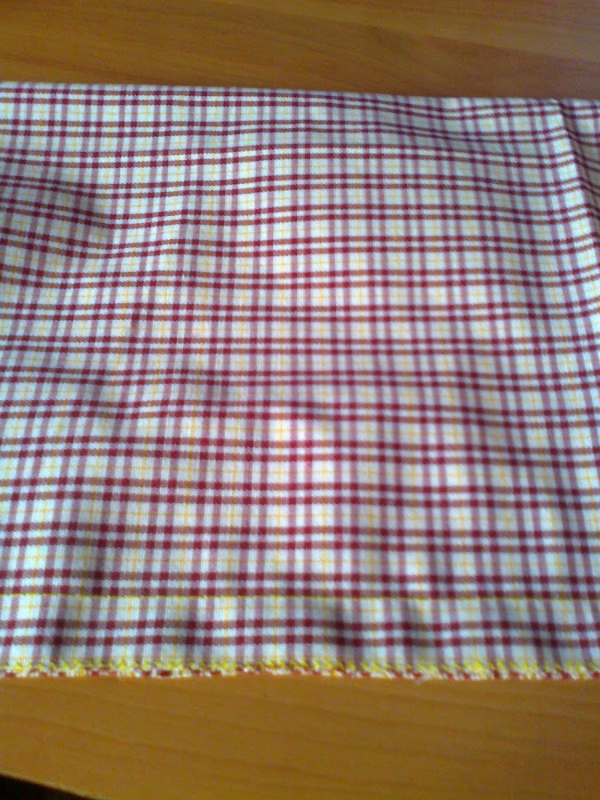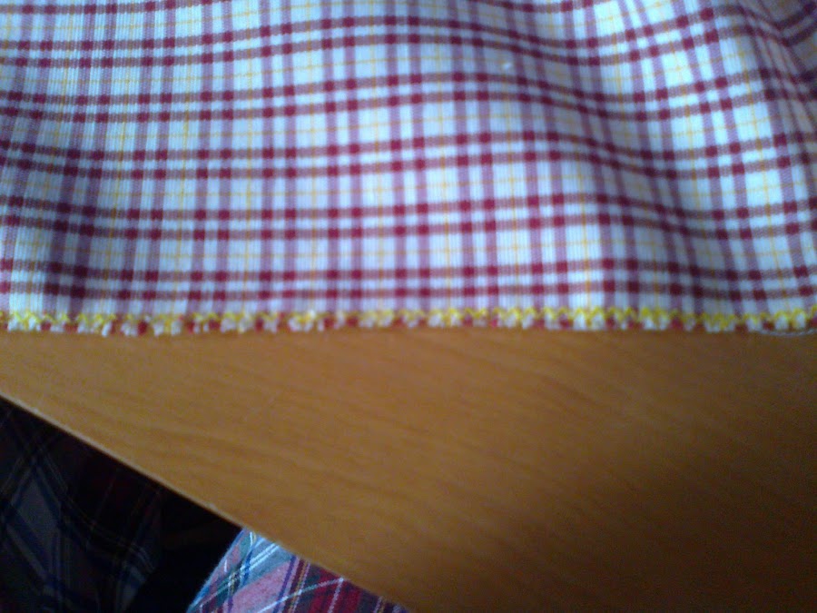 Una vez que tenemos los dos trozos de tela los sobrehilamos (por lo menos en mi caso era obligado porque la tela se deshilachaba un montón).