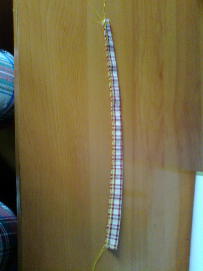 Lo primero es cortar un trocito estrecho del retal (os aconsejo que sea de unos 3 cm de ancho como mínimo, yo lo corté algo más estrechito y para darle la vuelta me volví loca...).